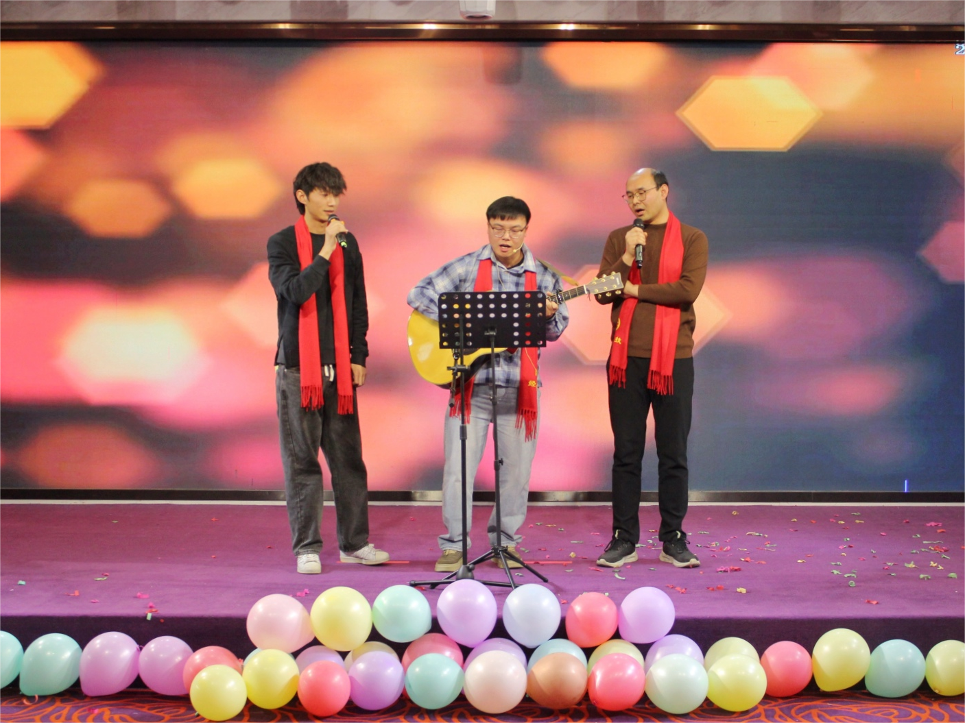 联欢会期间还设置了四轮抽奖,随着一波波幸运礼品的抽出,现场气氛被一次次推向高潮。中奖的幸运儿们欢呼雀跃地走上舞台,脸上洋溢着幸福的笑容,现场充满了温馨与欢乐。