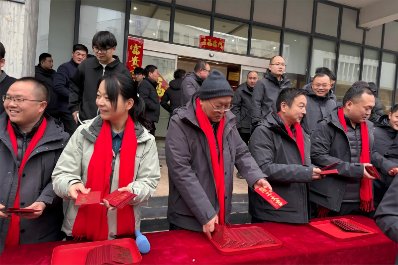 在会议正式召开之前,董事长王总带领管理层为全体员工派发了精心准备的开工红包,传递了新年的祝福与公司关怀,并组织拍摄了新春合影纪念照。