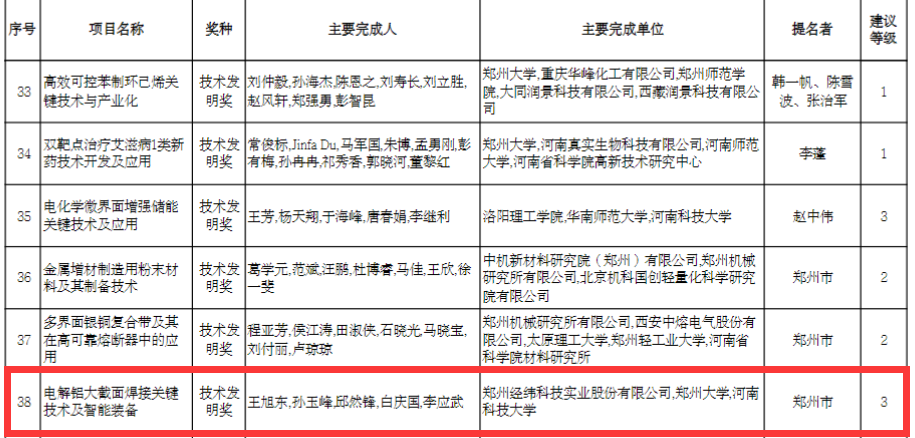 On October 23, 2024, the Science and Technology Department of Henan Province announced the “2024 Henan Provincial Science and Technology Prize Award Suggested Projects”, and the technical achievement of “Key Technology and Intelligent Equipments for Welding of Electrolytic Aluminum Large Sections” declared by Zhengzhou Jingwei Technology as the first unit of completion won the Third Prize of Henan Provincial Technical Invention Award.